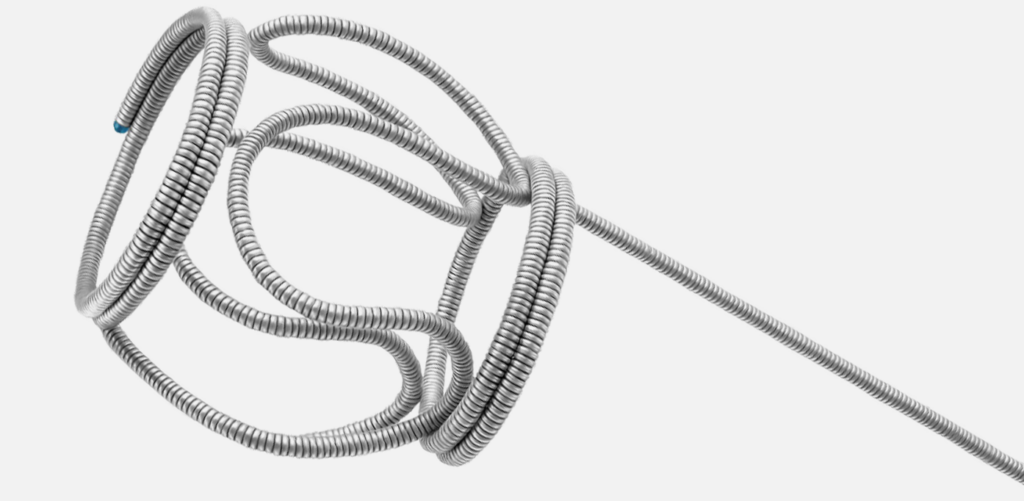 Ao ser liberado do microcateter, o coil assume uma forma tridimensional volumétrica, ocupando eficientemente o espaço do aneurisma ou da lesão.