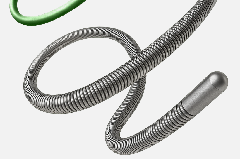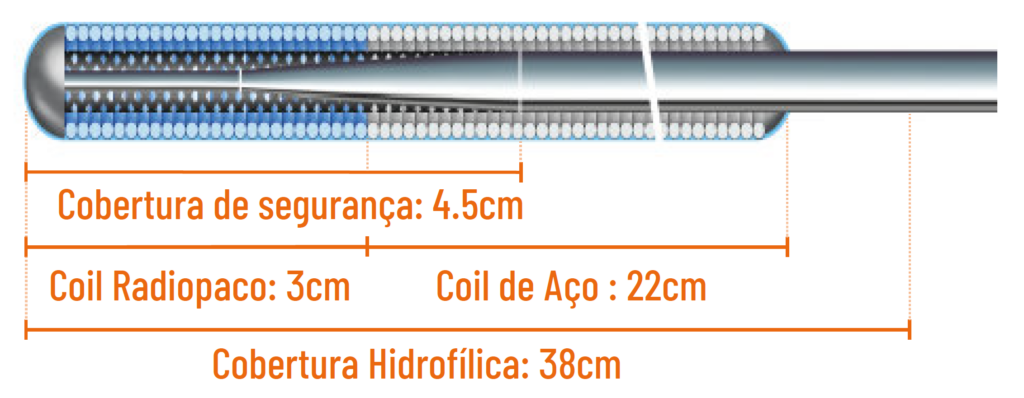 Core (alma) proximal de aço inoxidável com cobertura de PTFE, fornecendo uma excelente transmissão de torque e lubricidade.